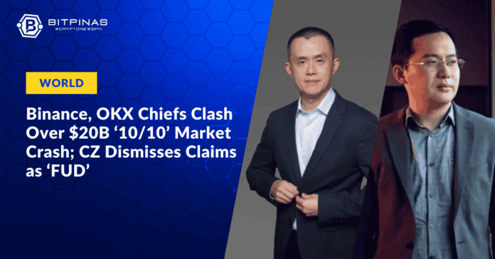 This article is published on BitPinas: Binance, OKX Chiefs Clash Over $20B ‘10/10’ Market Crash; CZ Dismisses Claims as ‘FUD’