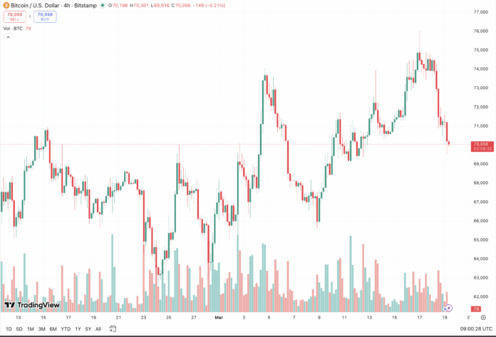 Currently, Bitcoin is trading in a tight range. Traders are watching the $70,000 line closely; a daily close below it could signal a deeper correction that would reset all gains since the end of February.