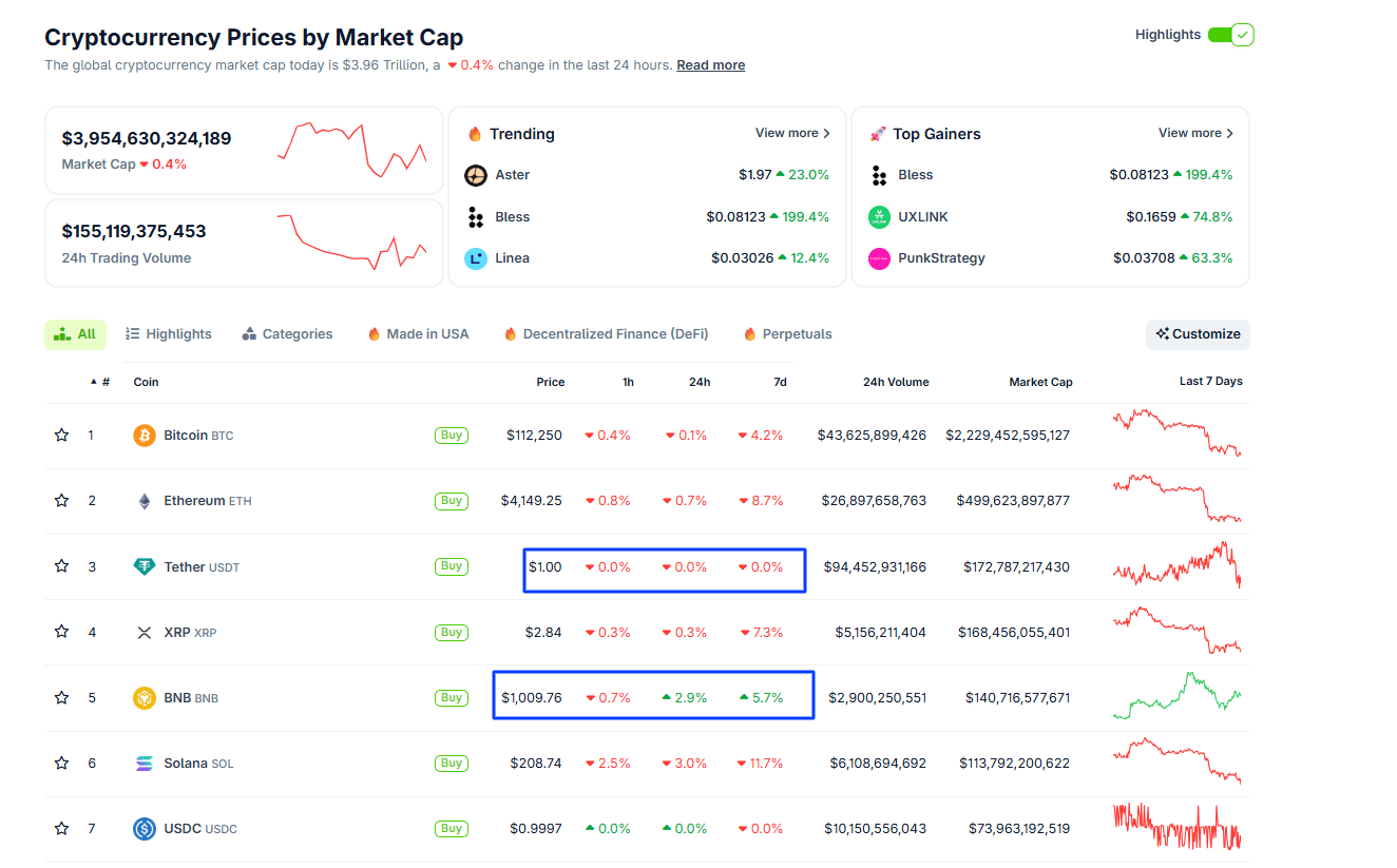 On Coingecko, BNB trails the similarly resurgent XRP. Yet unlike Ethereum, Cardano, Solana, Dogecoin, or even top Solana meme coins, BNB crypto is in the green in the past 24 hours and week, up +3% and +5%, respectively. It is even more stable than USDT.