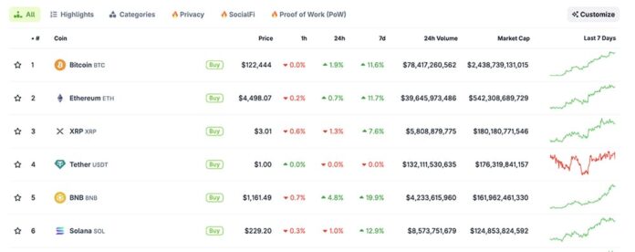 The headline numbers are hard to ignore as the BTC USD pair gained sharply, closing at its ATH, while the ETH USD pair followed with conviction, but barely pushed above $4,500. Still, with BTC dominance brushing close to 60 %, the tug‑of‑war between majors and alts remains intense.