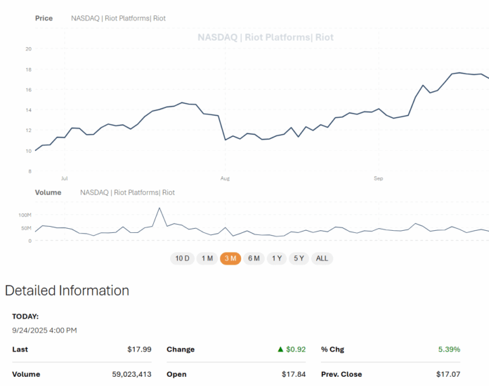 — Riot Platforms, Inc. (@RiotPlatforms) September 24, 2025