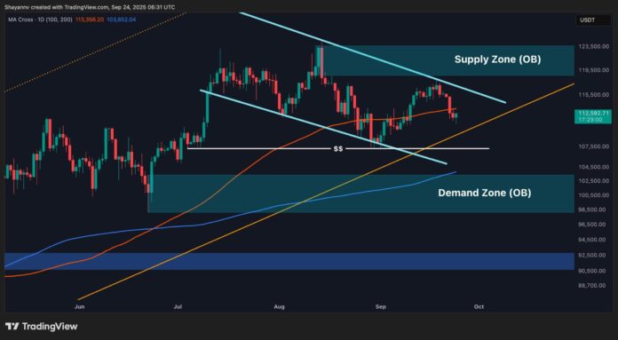 This pullback also tested the 100-day moving average at $111K, a level that has consistently provided structural support, underscoring its significance. As long as Bitcoin holds above this demand cluster, the broader uptrend remains intact. However, a decisive breakdown here would likely expose deeper liquidity near $107K–$105K, where stronger demand is expected.