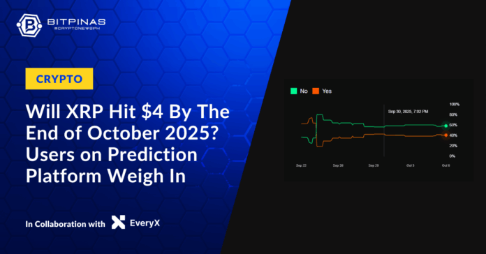 This article is published on BitPinas: Will XRP Reach $4 By End of Oct 2025? Sentiment Divided on Prediction Platform